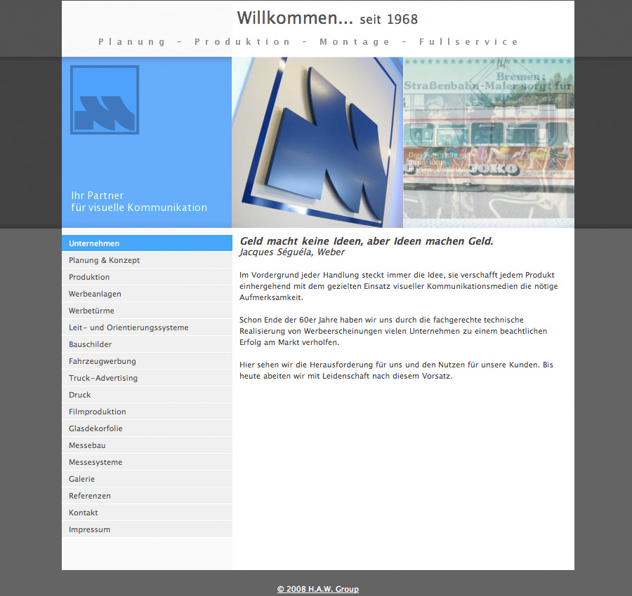 Diese Philosphie ist unser Bestreben, wenn es um Ihre Aufstellung im weltweiten Internet geht. In einem engen Dialog mit Ihnen werden wir Ihre Unverwechselbarkeit erarbeiten und in einem einzigartigen Webdesign verwirklichen.